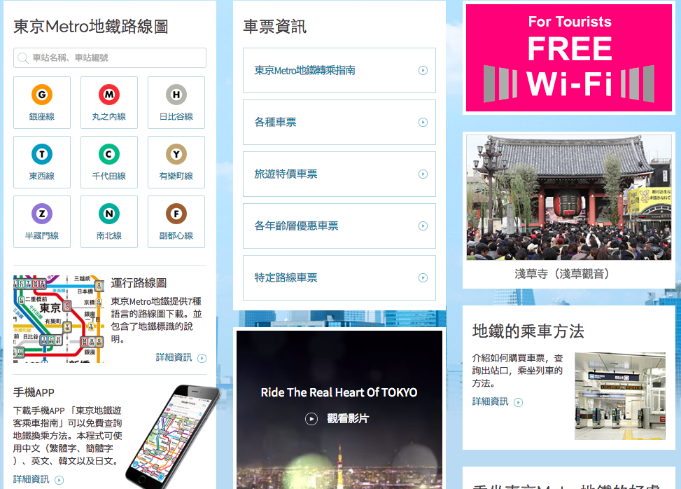 如果需要更詳細的資訊,東京Metro的網站上都可以找到繁體中文的內容。