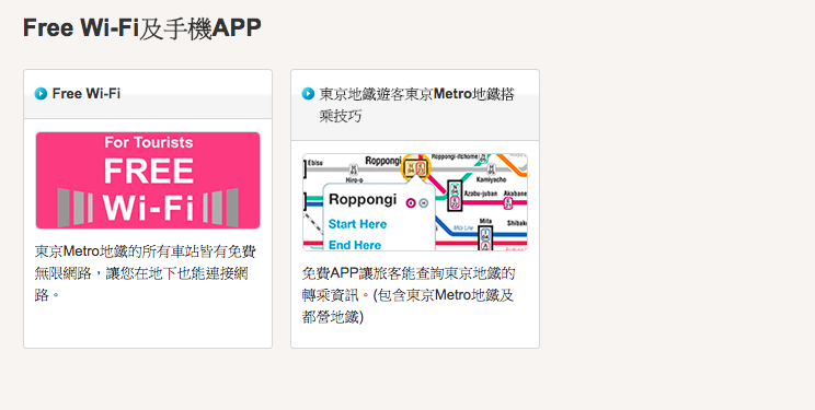 那麼也別擔心,東京Metro地鐵站也都會有免費的網路可以查詢接通。