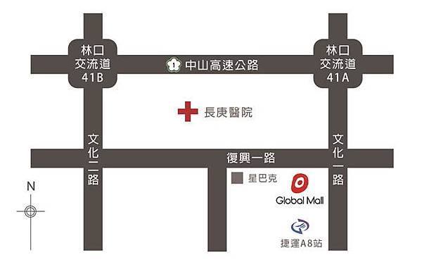 搭乘捷運機場線至A8長庚醫院站下車 走2F出口。