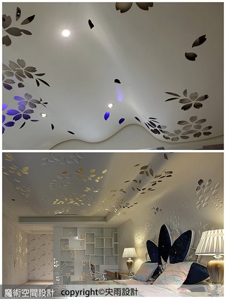 9【圖說】以陰刻及陽刻概念,展現蝴蝶翩然輕盈的舞姿,天花板內藏光源,增添浪漫情調。