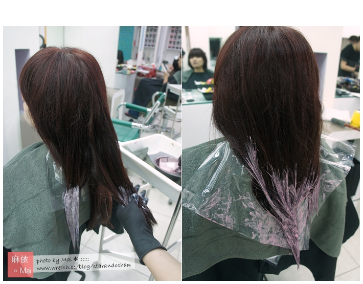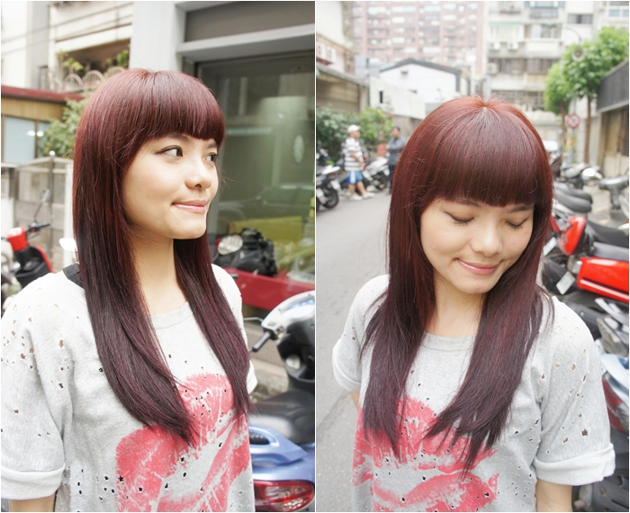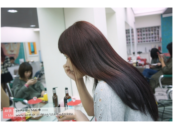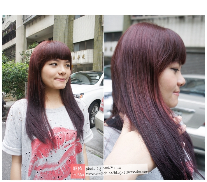 所以討論出來就是上面是咖紅色,髮尾部分則是深紫色,讓頭髮的層次感會比較好