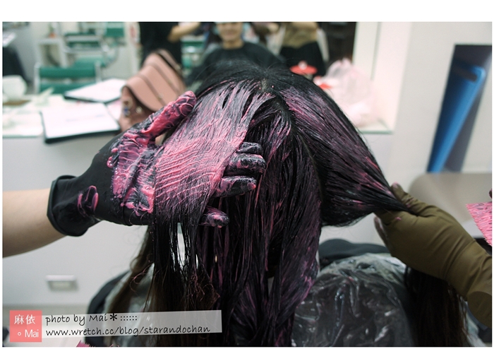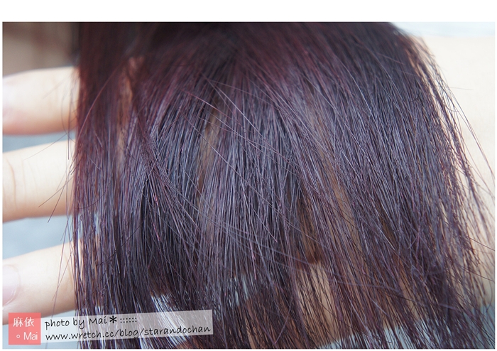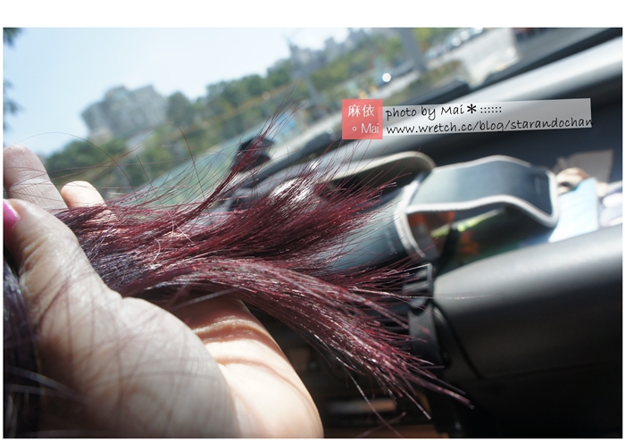 一直大喊是粉紅色耶,其實染在黑髮上顏色會比較退一點,就是咖紅色囉