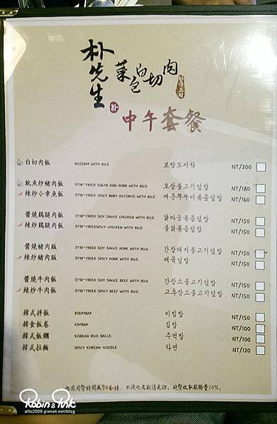 牆上有掛著中韓文的簡易菜單,不過韓國餐廳好像都蠻喜歡掛這種木牌菜單的樣子,沒去過韓國,不知道是不是連當地的餐廳也是都有這樣的元素存在
