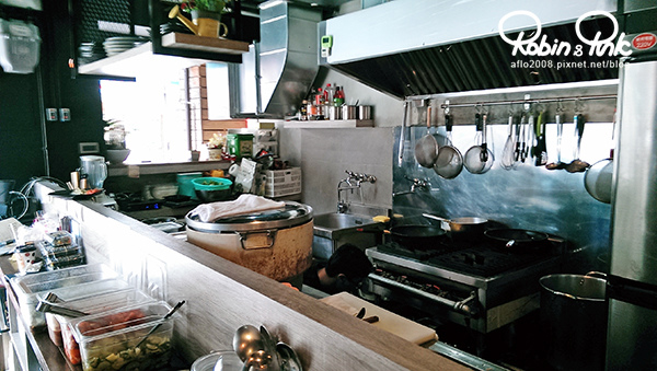 小小的廚房,也是應有盡有的器具,廚師剛好不在,不然可以拍到他在專注料理時的樣子