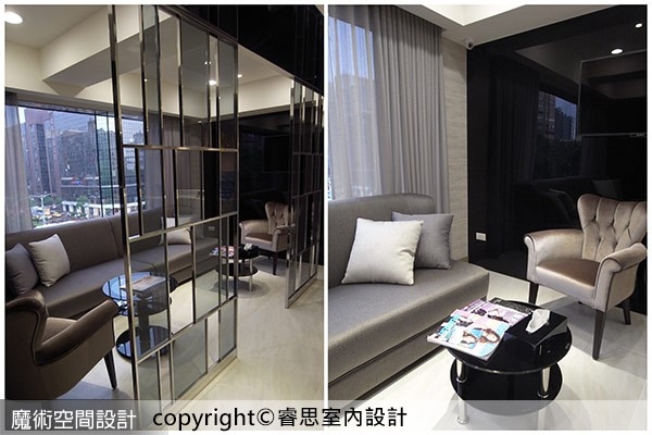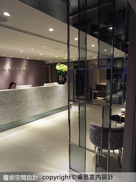 精緻、高雅、飯店式的精品概念,已然成為許多商業空間趨之若鶩的領導風格,睿思設計夏嘉鴻設計總監針對醫美空間的規劃上,以現代俐落前衛的時尚印象主導,將各區域、機能規劃分明,將實用、機能、美學三者的共同營造,讓內外的線條架構,完美的到達平衡比例,並重新解釋華麗意義,同時滿足企業主的需求。