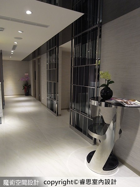 (8)【圖說】於廊道規劃上,透過燈光與材質的搭配,給予視覺上較為沉穩、靜謐的印象。