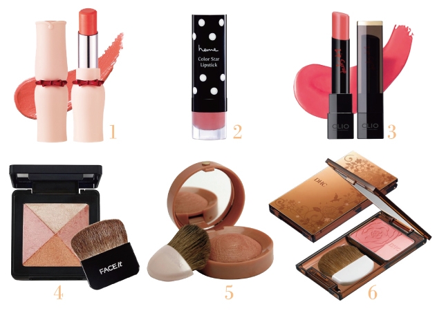 Step4選擇淡色系的珊瑚色、粉橘色唇膏,均勻塗抹上下唇,完成後再用衛生紙按壓,讓純色呈現自然好氣色感。