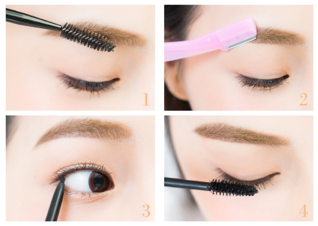 Step1.先將眉毛的流向梳順、梳理整齊,並用小剪刀小心地將較長的眉毛修短。