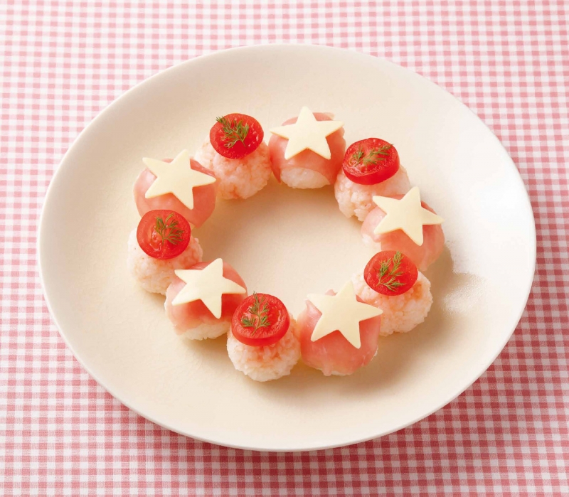 5 將作法 2 與作法 4 交錯排放在盤子上,擺成圓形的花環。