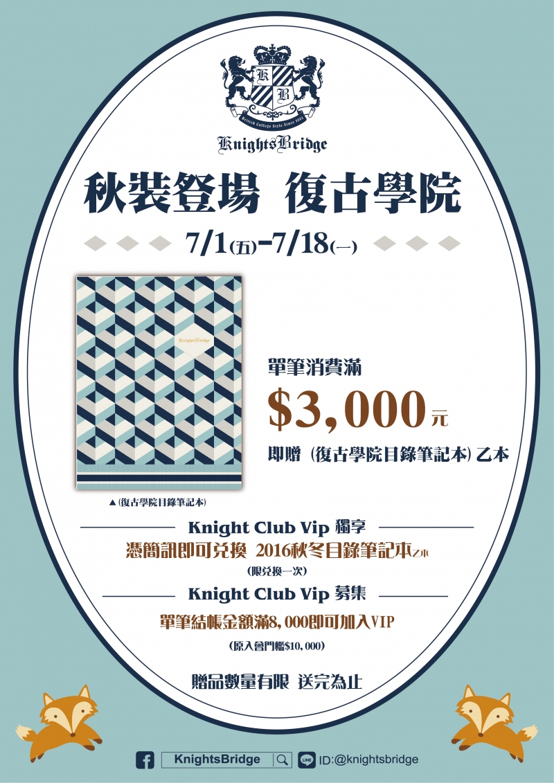 單筆結帳金額滿8,000元即可加入KnightsBridge Club VIP。