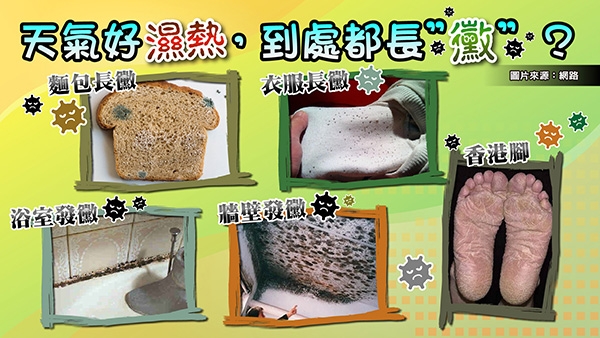 台灣長年處於潮濕環境,如果不隨時注意保存方式,很容易導致物品、傢俱發霉。藝人芳瑜提到家裡是浴室比較黴,主要是沒有對外窗,很潮濕;而排水口的周邊 、洗手台的邊及馬桶的黏膠處也都有黴。
