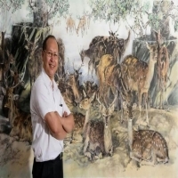 展出的作品除了描繪山林、田間景緻外,更有一幅「百祿圖」,展現百隻臺灣梅花鹿動、靜自如,氣勢軒宇的創作,是老師近期力作。水墨風格保有傳統筆趣墨韻並承襲嶺南派彩墨特色,將西方的素描、水彩技巧、透視光影,注入傳統水墨畫中。其繪畫表現,寫盡山石雲水之美;層次豐富的墨韻景緻,更為台灣的自然景觀,添上獨特的人文哲思。