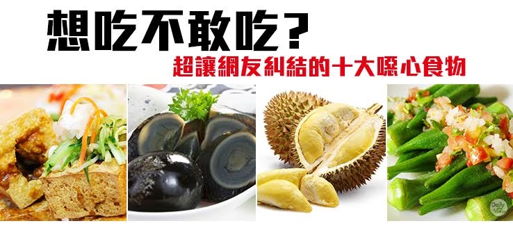 世界上各地,隨著氣候、地理還有風土民情的不同等等,也會發展出形式各異,許多特別的飲食習慣與特別的食物。我 們的寶島台灣是美食之島,三步一小吃、五步一大吃的美名可以說是聲名遠播,吸引世界各地的老饕前來嘗鮮,雖說如此,但有些美食,吃之前總是讓人看得心驚 驚,吃得戰戰兢兢,就像哈密瓜一樣,有些人喜歡、有些人不喜歡,那麼在台灣網友們既期待又怕受傷害的噁心食物,到底又有哪些呢?今天DailyView網