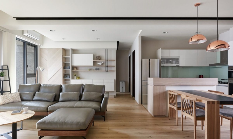 室內並採用大量的輕淺木色渲染,與純白色系的相互搭配,讓空間感更加清新脫俗。