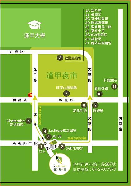 逢甲歡樂星距離葉綠宿步行約5~10分鐘, 裡面的店家種類多元, 有吃有玩~