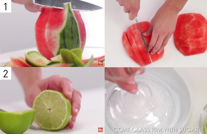 因為西瓜已經有一定的甜度,無須加過多的糖,所以只有105卡洛里!在調酒中加入檸檬提香,還在杯緣裹上一圈糖粒,高質感派對飲品華麗登場!