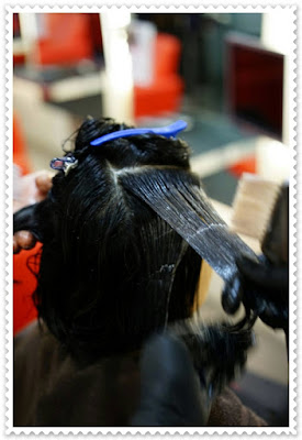 而Ivy卻僅是以溫水不斷的沖洗,直到將藥劑完全沖掉為止,我還特別問Ivy為何不直接用洗髮精比較快,她回答說:因為洗髮精是酸性的,如果再用洗髮精洗會再次傷害髮質.真是又多懂了一些!