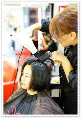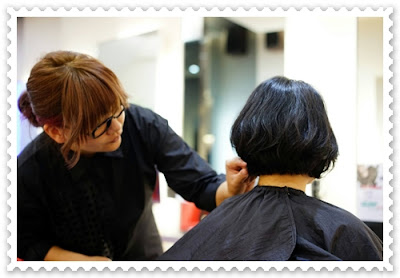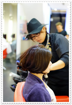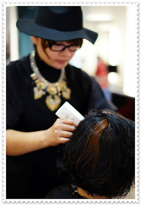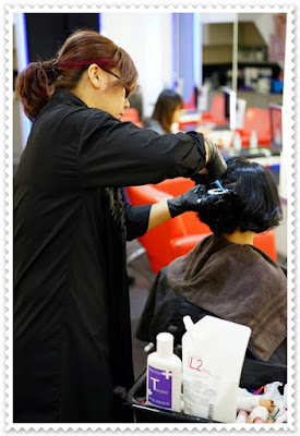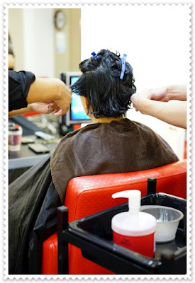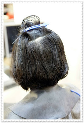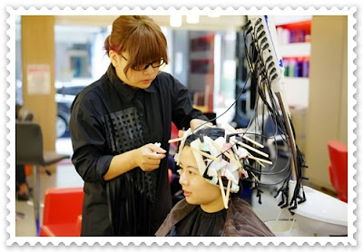 剪好髮型後,便開始軟化頭髮的步驟
