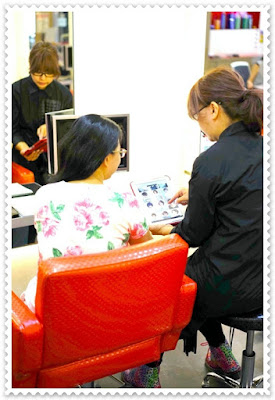 設計師Ivy用平板電腦跟我分析建議,適合我的造型,這次要做的是剪短和髮尾燙捲的造形
