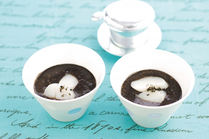 3 將步驟1放入容器中,再放入瀝乾水分的步驟2,撒上黑芝麻粉。