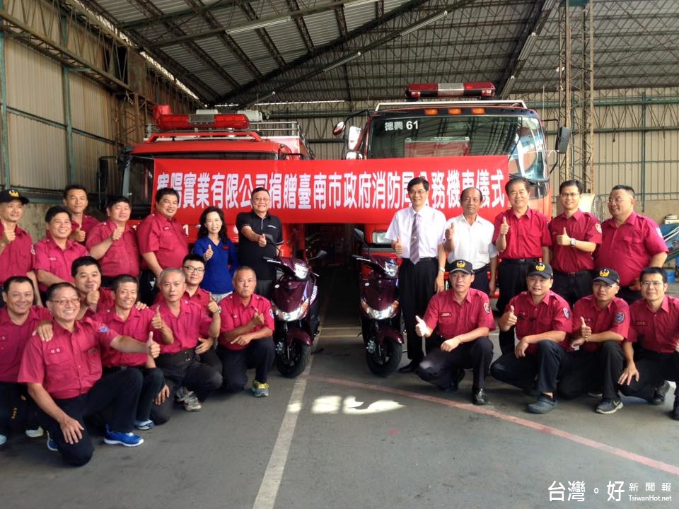 台南一家汽機車零件、車燈的寯陽實業有限公司董事長蔡明憲,個人與公司捐贈2台造價近十萬元公務機車給台南市消防局德興分隊,嘉惠市民,也為這群辛苦維護市民安全的打火弟兄提供更便利的救災設備,讓救災救護上能盡最大效應。