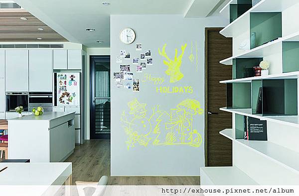黑板漆+磁性漆 可隨興塗鴉的實用牆。圖片提供 思維空間設計