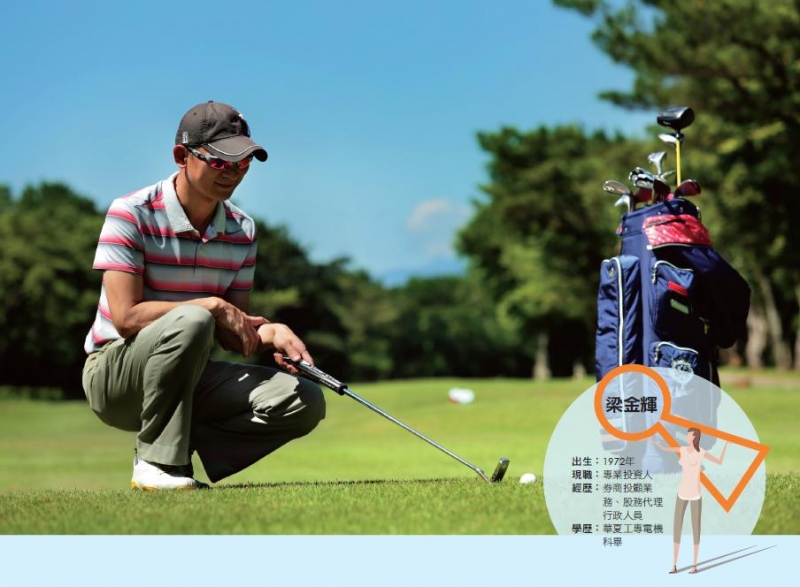 「跟朋友約5點打球,是比較早一點,但就算不打球,我也是4、5點起床。」不用趕上班,生活卻比上班族更規律,梁金輝天天晚上10點半就寢,不菸不酒,平時也不喝咖啡,生活中除了打球,就是到券商與營業員或約朋友聊天。