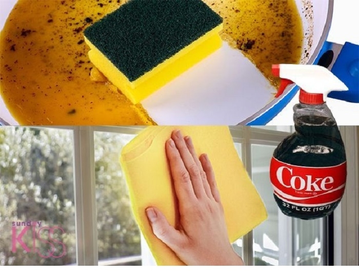 個鍋燒焦了好難洗?只要將可樂倒入燒熱的平底鍋中並煮沸,可以去除所有的污漬。