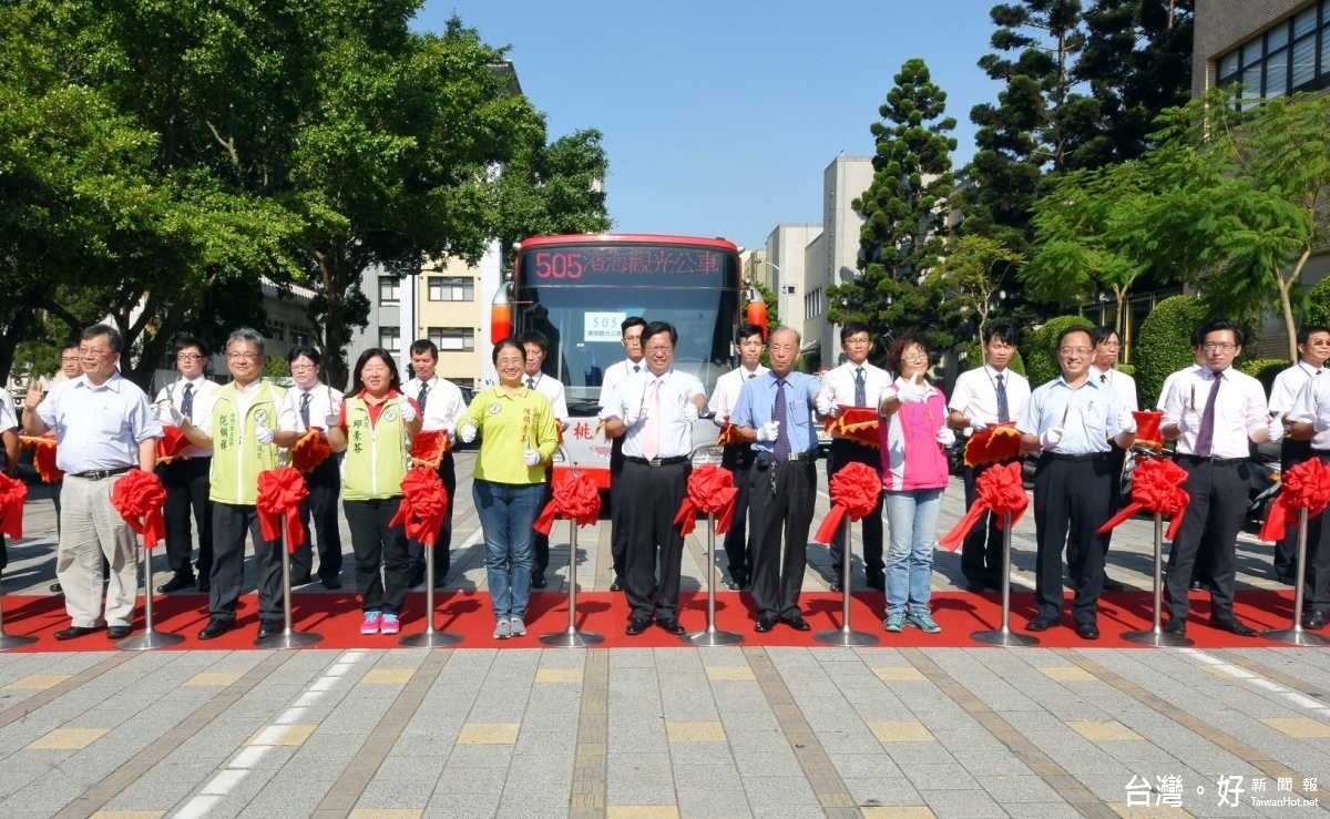 桃園市長鄭文燦4日下午在文化局前廣場,出席505濱海觀光公車通車典禮,鄭市長表示,桃園目前有台灣好行501慈湖線、502小烏來線及503親子樂園線,505濱海觀光公車通車後,到新屋、觀音的遊客不用開小客車,只要搭乘大眾運輸工具就可抵達,響應低碳運輸概念。505濱海觀光公車從桃園客運中壢站出發,沿途經老K舒眠文化館、范姜古厝、太平洋自行車博物館、永安漁港、白沙岬燈塔、甘泉寺等景點,歡迎民眾來一趟濱海觀光低碳輕旅行。