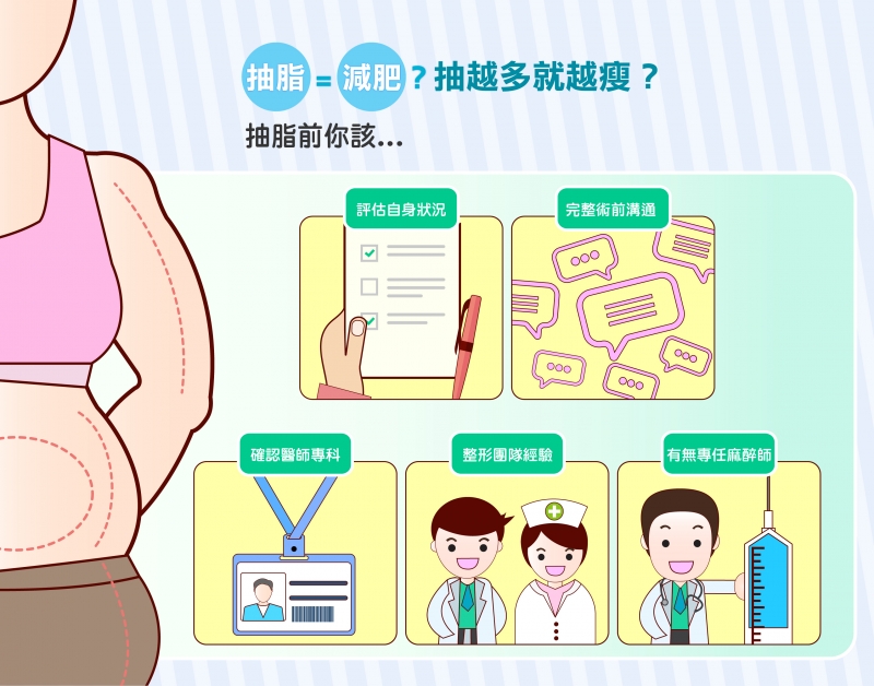 (圖說:抽脂=減肥,大錯特錯!脂肪不是抽越多就越好。)