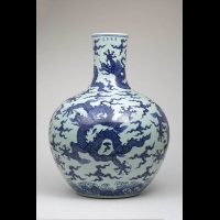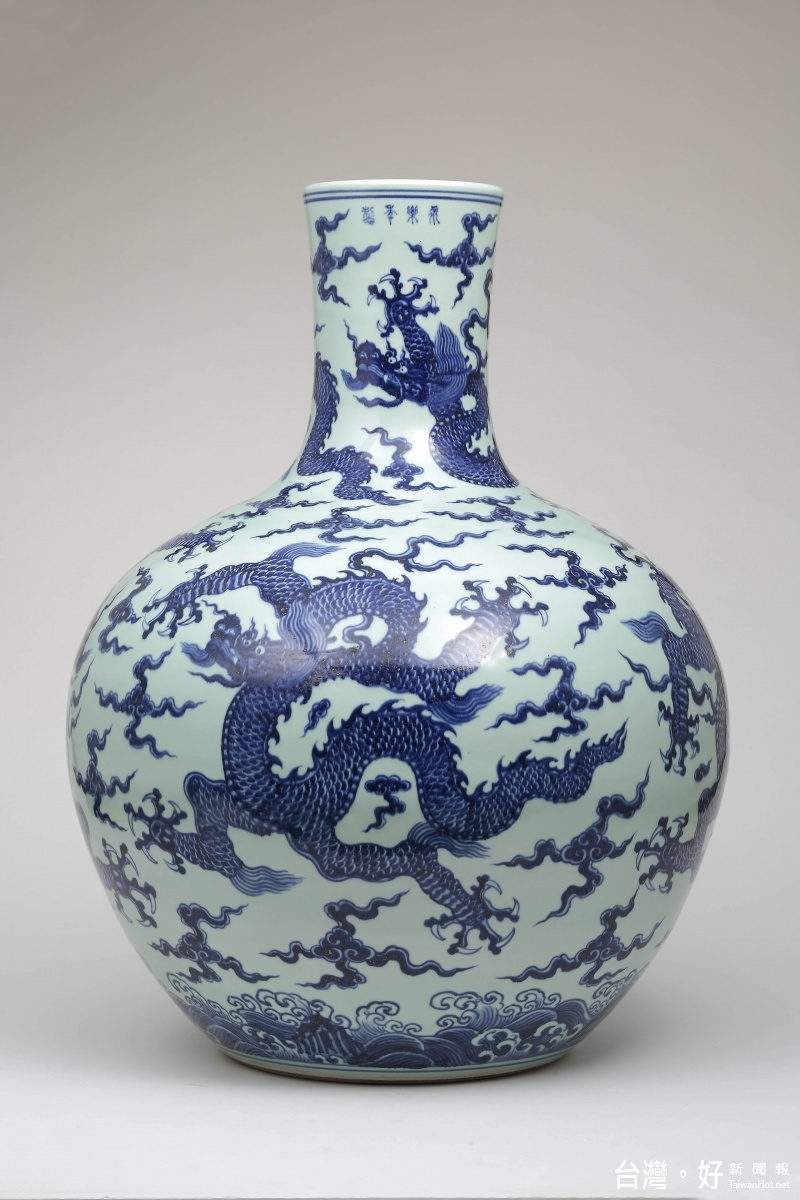永樂青花五雲龍紋天球瓶,特別是當時採用國外所進口的鈷藍礦~「蘇麻尼青」 顏料塗繪燒製而成的宮廷瓷器,更屬青花瓷中之精品。… 天球瓶歷代以來,因器型碩大,向屬難以完美燒作的瓷件。