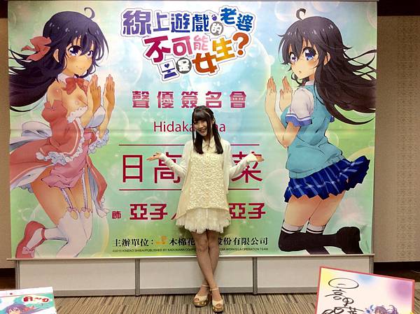 【多汁報●動漫組/台北報導】8/15(一)動畫代理商「木棉花」邀請到《線上遊戲的老婆不可能是女生》女主角「亞子」的聲優「日高里菜」來到漫博舞台舉行簽名會,活動一開始,日高里菜就以中文「大家好」向粉絲揮手,溫和親切的聲音,讓現場立刻熱絡起來。而初次來到台灣的日高里菜也表示非常期待參加此次的簽名會活動,面對現場粉絲的熱情也感到非常開心。