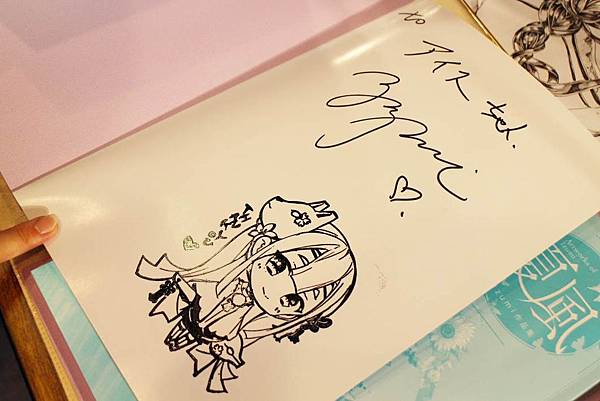 而在這次的簽名會中,Izumi老師除了簽書外,還會蓋上為了今日活動特別設計的大印章,圖樣相當可愛而且極具珍藏價值!而活動中台灣角川也特別準備小卡讓讀者寫下祝福及鼓勵的話給老師,同時也順利進行抽獎送出三張手繪精美簽名板!Izumi老師活動最後表示自己非常的感動,當自己心情低落的時候,一定會拿出這些小卡,為自己再補充能量!