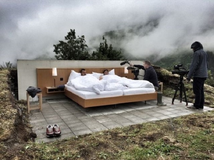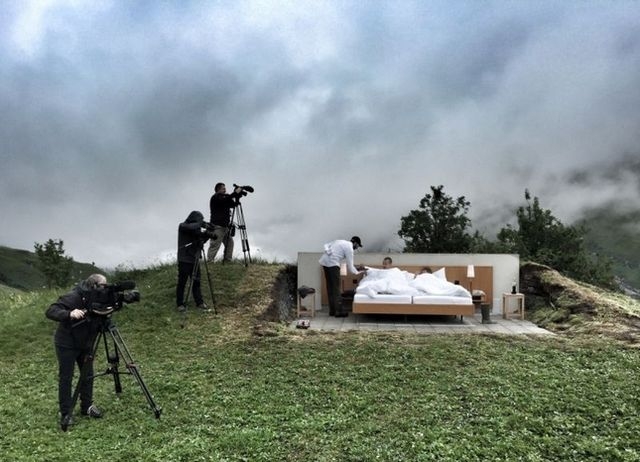 Null Stern Hotel以零星級,防空洞建造而成的特點聞名,近期又出奇不意的推出了一間連牆壁都沒有的客房,以大自然為家的概念,坐落於瑞士阿爾卑斯山近海拔2000公尺上頭,住宿一晚需要250瑞士法郎(約八千多台幣)。