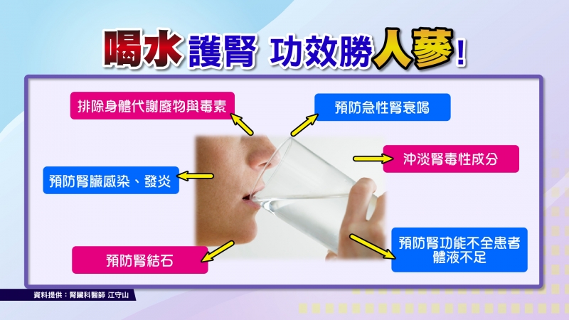 腎臟科醫師江守山解釋,喝好水可以保護腎臟,且有益健康,但喝水可不是拚命猛灌、喝越多越好,想要健康喝水,就得掌握「喝多少、何時喝」的飲水要訣。