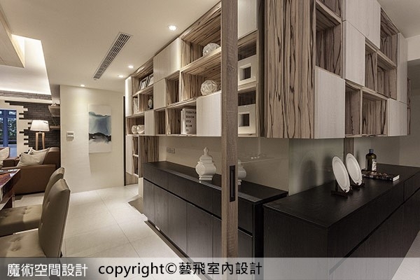5.【圖說】不同於一般餐具櫃的規矩方正,吳灃承設計師以虛實跳接的不規則組合,為空間注入活潑生動的氣息。