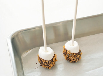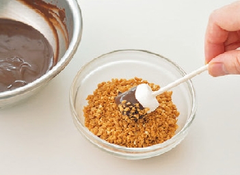 棉花糖沾巧克力後,再裹上喜歡的配料!