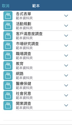 ▲各式範本挑選/編輯問卷