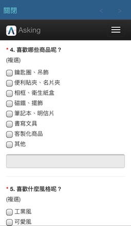 為了更瞭解客人的想法 我用Asking設計了滿意度調查表