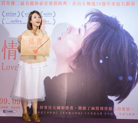 岩井俊二的首部純愛作品《情書》將於9/9重返大銀幕,觀眾影評間都很期待這部睽違20年的經典好片重新上映,今日活動中更邀請到《情書》電影大使宋芸樺氣質出席。而她自出道以來的電影作品也都是台灣近年來的純愛好作,因此特邀這位代表新生代的純愛氣質女星,擔任影迷與《情書》間的跨時代橋梁。宋芸樺甚至表示自己喜歡到希望能有拍攝台版《情書》,挑戰中山美穗一人分飾兩角的機會!