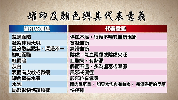 - 微紅、白色:罐印為微紅或白,代表體內濕氣重。
