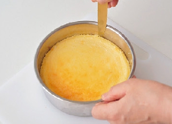※ 因為蛋糕會黏在烤模周圍,不要急著脫模,先用刀子插入繞一圈後再取出。