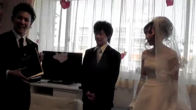 婚禮的當天播放了先前在病房中的拍攝影片,