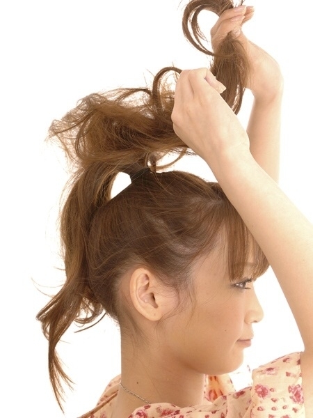 先抓出一小束一小束的髮束,用手指抓住髮尾,用另一隻手的手指往頭髮與髮圈的交際處逆梳頭髮。