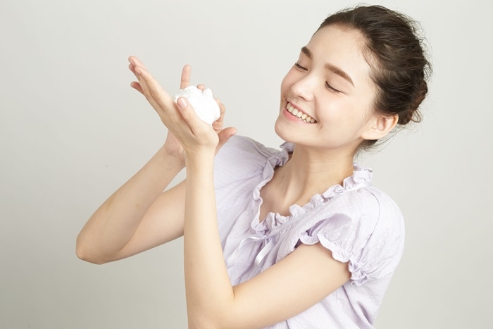 利用大量綿密細緻泡沫帶走肌膚上的油膩感!