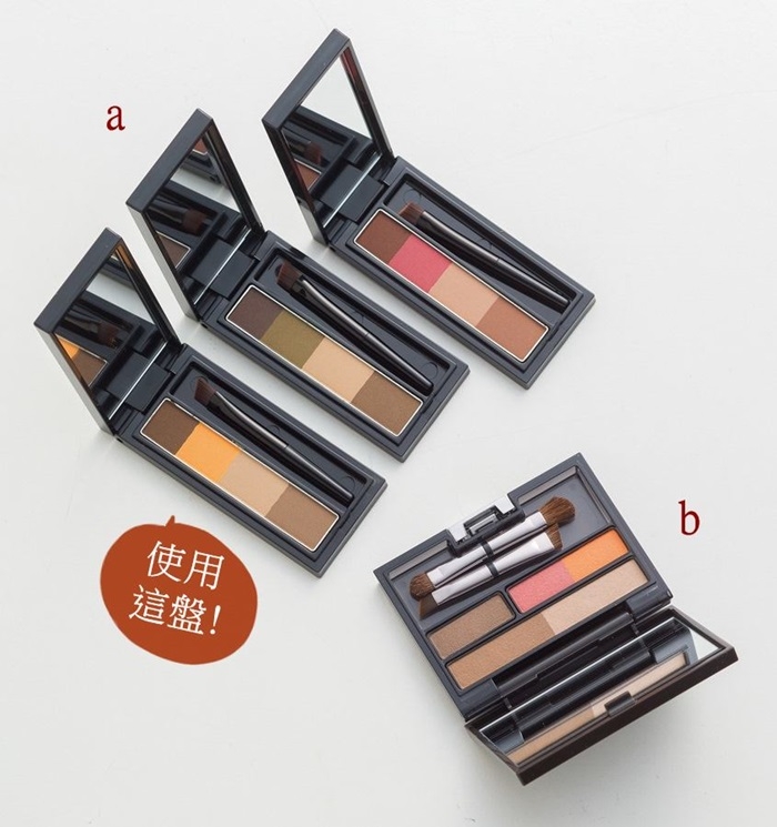 b.以5色眉粉加上4款筆刷,輕鬆打造清澈色彩、透明感以及打亮陰影,讓五官更深邃有型!IPSA 活現誘色眉彩組