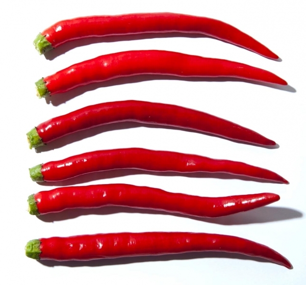 A:兩份同樣的餐點,一份加入辣椒,另一份則無,有辣椒的部份確實能讓新陳代謝微幅提升,增加熱量的消耗,事實上只有加快一點點而已。提醒腸胃不好的人避免食用過量的刺激性食物。