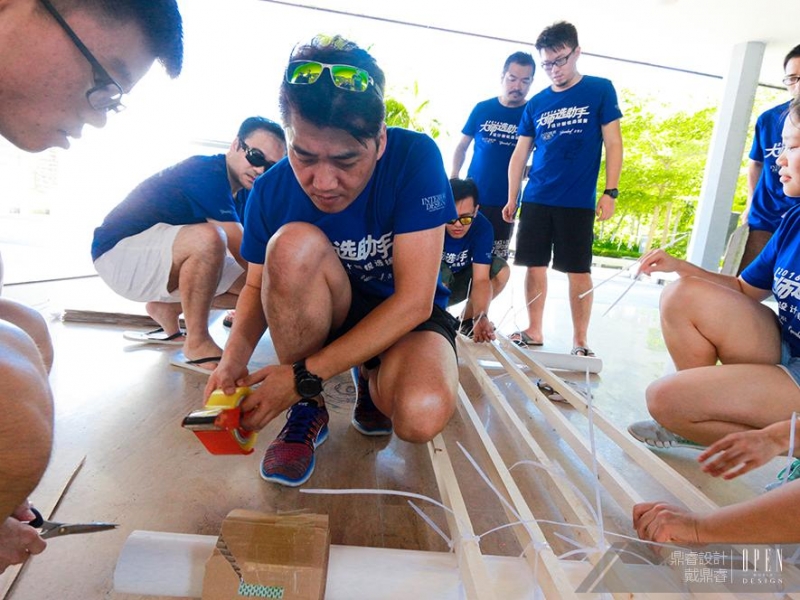 在考驗團隊合作默契的拓展訓練中,戴鼎睿 實地為選手們演示操作過程,促進了設計名師與選手的雙向交流,藉由拓展訓練環節誠懇而真摯為新銳們帶來設計思維的新氣象。強調行為模式的觀察與自然元素的構成,戴鼎睿 以飽滿的熱情帶動團隊合作,舉手投足間實踐己身的核心理念,讓年輕設計師們得以一覽夢想導師的每一個動作細節,傳承名師設計上的精彩風範。