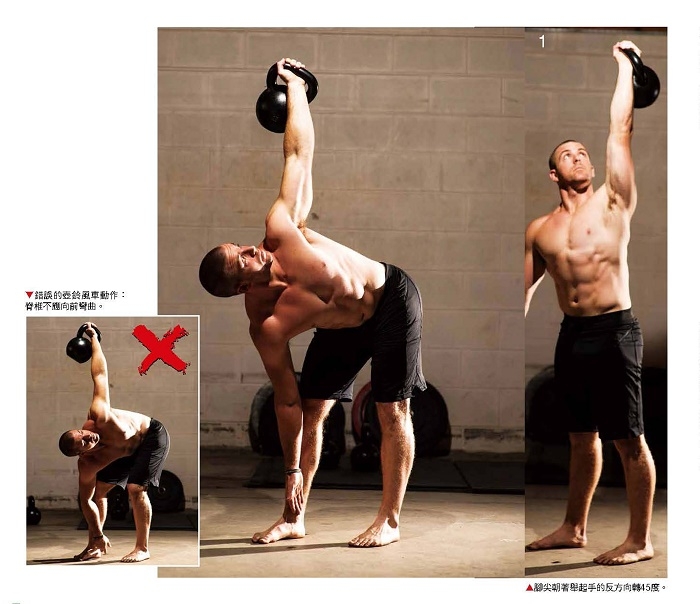 注意不要選擇太重的壺鈴,以免無法維持良好的動作品質和姿勢。在動作時,應挺直腰腹,確保該部位的穩定度,並避免用脊椎出力。練習時,為了保持兩側肌肉與動作的平衡,順時針和逆時針方向都應分別練習。