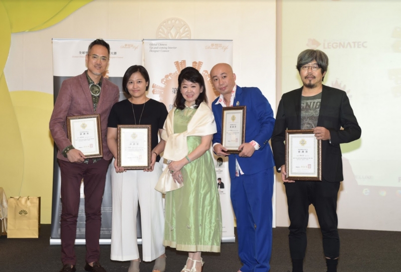 ↑↑↑夢想誌第二屆 GCU 全球華人新銳室內設計大賽頒獎典禮現場夢想誌社長陳懿茱與評審團合影(左起:榮譽評審 劉榮祿、評審張馨、夢想誌社長陳懿茱、評審林青龍、評審周冠易)